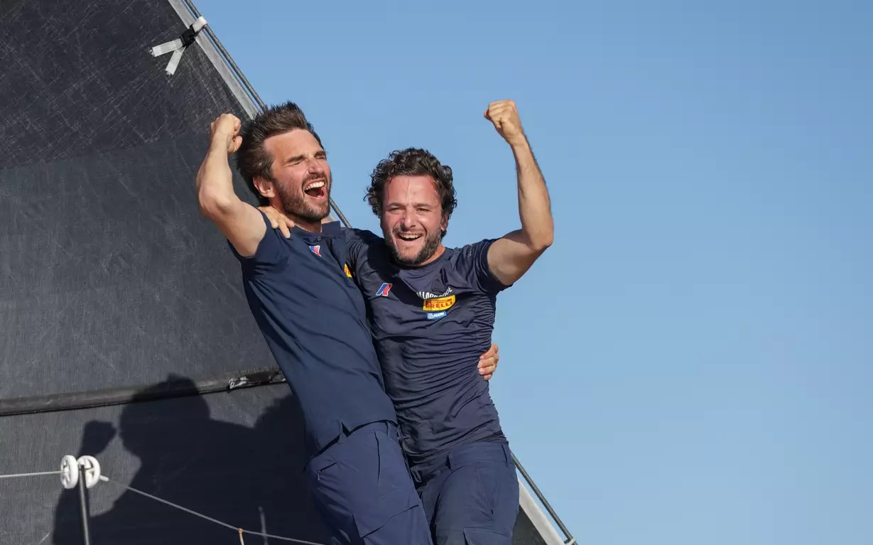 Ce jeudi à 08h01 heure locale (13h01 heure de Paris), Ambrogio Beccaria et Nicolas Andrieu ont franchi la ligne d’arrivée en vainqueur dans la baie de Fort-de-France de la 16ème édition de la Transat Jacques Vabre Normandie Le Havre. Le temps de course de Alla Grande Pirelli est de 18 jours 12 heures 21 minutes 55 secondes. Il a effectué les 3750 milles du parcours entre Le Havre et Fort-de-France à la vitesse de 9,10 noeuds sur l’orthodromie (route directe). Il a en réalité parcouru 5 381.51 milles à la vitesse moyenne de 12,11 noeuds (sur l’eau).