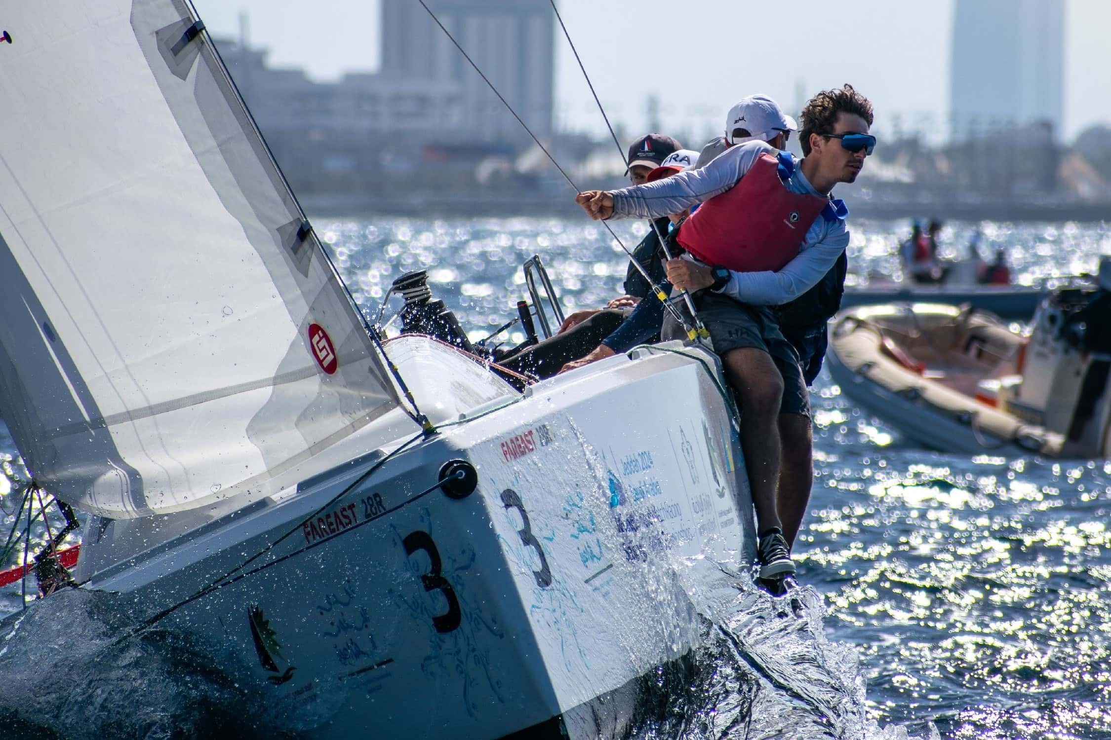 Jeddah capitale du Match-Racing en ce début décembre ! Avant le Championnat du Monde Fémiin qui débutera dans quelques jours, le plan d’eau saoudien au cœur de la Mer Rouge accueillait cette semaine les meilleurs talents du duel pour le Championnat du Monde Jeunes de Match-Racing. Deux équipages français étaient en lice avec Timothée Rossi (SR Antibes) et Ange Delerce (SR Antibes) qui défendait son titre acquis l’an passé à Sydney. Au bout d’une compétition intense, Ange, accompagné de Julia D'Amodio (Cannes Jeunesse), Julien Bunel (BN Mare e Vela), Sylvestre De Giuli Morghen (ASPTT Marseille) et Thomas Flachon (SR Antibes) a cette fois-ci laissé le trophée à celui qu’il avait battu l’an dernier, l’Australien Cole Tapper, impérial en phase finale et qui a eu sa revanche sur les Français cette année en Finale.